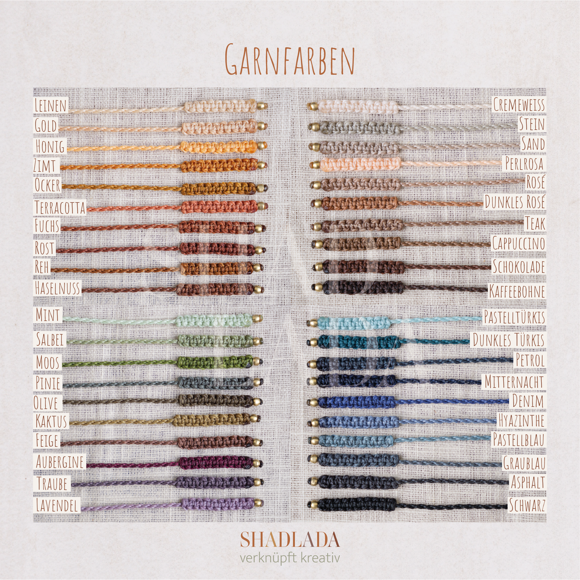 Material: Gewachstes Polyestergarn, Messingperlen und Messinganhänger